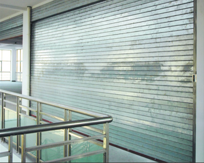 垂直钢质防火卷帘是用钢质材料做帘板、导轨、座板、门楣、箱体等,与防火卷机和防火控制箱組成的能满足耐火大限度和热辐射强度要求的卷帘。《高层民用建筑设计防火规范》(GB50045-95)版中规定,作为防火分区分隔时,卷帘侧应设闭式自动喷水灭火系统,其喷头间距不应小于20m。